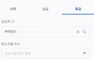 업비트 사용시 출금 화면에서 바이낸스 선택후 받는사람 주소에 “바이낸스의 내 입금 주소”를 입력후 출금 요청하시면 됩니다.
