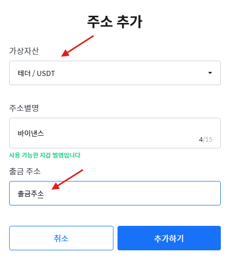 가상 자산은 USDT 와 트론을 등록해주세요. 이후 입출금 화면에서 가상자산 선택 후 출금 진행하시면됩니다.